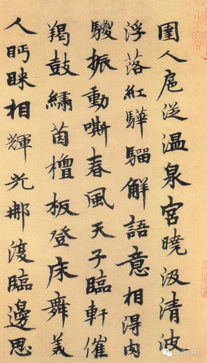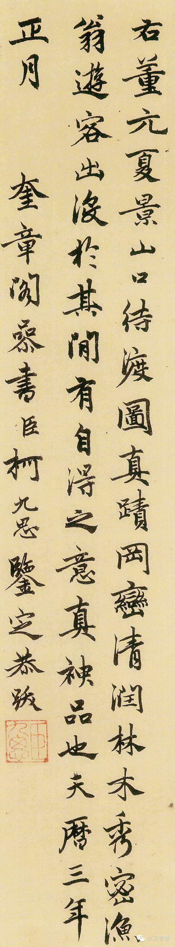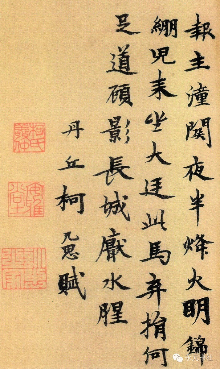 柯九思博学能诗文;善书,四体八法俱能起雅去俗。素有诗、书、画三绝之称。他的绘画以“神似”著称,擅画竹,并受赵孟頫影响,主张以书入画,曾自云:“写干用篆法,枝用草书法,写叶用八分,或用鲁公撇笔法,木石用折钗股、屋漏痕之遗意。”柯九思多藏魏晋人书法,如晋人书《曹娥诗》,也有部分宋人的精品,如苏轼《天际乌云帖》、黄庭坚《动静帖》等,经他鉴定的书画名迹流传至今者颇多。他的书法于欧阳询笔法之外融入魏晋人之韵,结体严整,字体恬和雅逸,雄厚重中见挺拔之秀气,深受赵孟頫推崇尚晋人书法观的影响。正如清人王文治所说:“丹邱书体仿效率更父子,力求劲拔,乃一望而知为元人书,时代为也。”