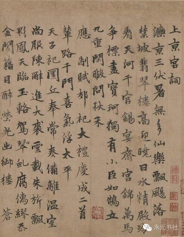 柯九思 ,字敬仲,号丹丘生,别号五云阁吏。台州仙居人(今属浙江省)。父谦,曾任翰林国史检阅、江浙儒学提举,是元朝仙居较为显扬的一个官宦。大德元年(1297),随父迁居钱塘(今杭州)。延佑元年(1314)以父荫补华亭县尉,不就。自幼爱好书画,聪颖绝伦,被视为神童。天历元年(1328),柯九思游学建康经人引荐结识了怀王图帖睦尔。不久怀王继位称帝,是为文宗。柯九思被授予典瑞院都事(正七品)一职。天历二年,元文宗仿宋阁学制,柯九思被迁升为奎章阁鉴书博士(正五品),专门负责宫廷所藏的金石书画的鉴定。凡内府所藏古器物、书画均命柯九思鉴定。经他鉴定收入内府的有王献之《鸭头丸》、虞世南临《兰亭序》、杨凝式《韭花贴》、苏轼《寒食帖》等。皇帝特"赐牙章得通籍禁署",与虞集、揭傒斯同为文宗时代奎章阁的代表人物。后因朝中官僚的嫉忌及文宗去世,柯九思束装南归,退居吴下,流寓松江(今属上海市)。