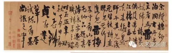 杨维桢的书法亦如他的诗一样,讲究抒情,尤其是草书作品,显示出放浪形骸的个性和抒情意味,杨维的传世墨迹约十余件,且都是五十岁后所书,故无法探求到他早年时学书的来龙去脉,但从其楷、行草诸体具备的遗作中来看,可其功力深厚,其书由诏追溯汉魏两晋,融合了汉隶、章草的古拙笔意,又汲取了二王行草的风韵和欧字劲峭的方笔,再结合自己强烈的艺术个性,最后形成了他奇崛峭拔,狷狂不羁的独特风格,与赵孟頫平和、资媚、秀美、曲雅的风格形成鲜明的对比,因其书不合常规,超逸放轶,刘璋在《书画史》中评曰:“廉夫行草书虽未合格,然自清劲可喜。”吴宽《匏翁家藏书》则称其书如“大将班师,三军奏凯,破斧缺笺,倒载而归。”他晚年的行草书,恣肆古奥,狂放雄强,显示出奇诡的想象力和磅礴的气概。