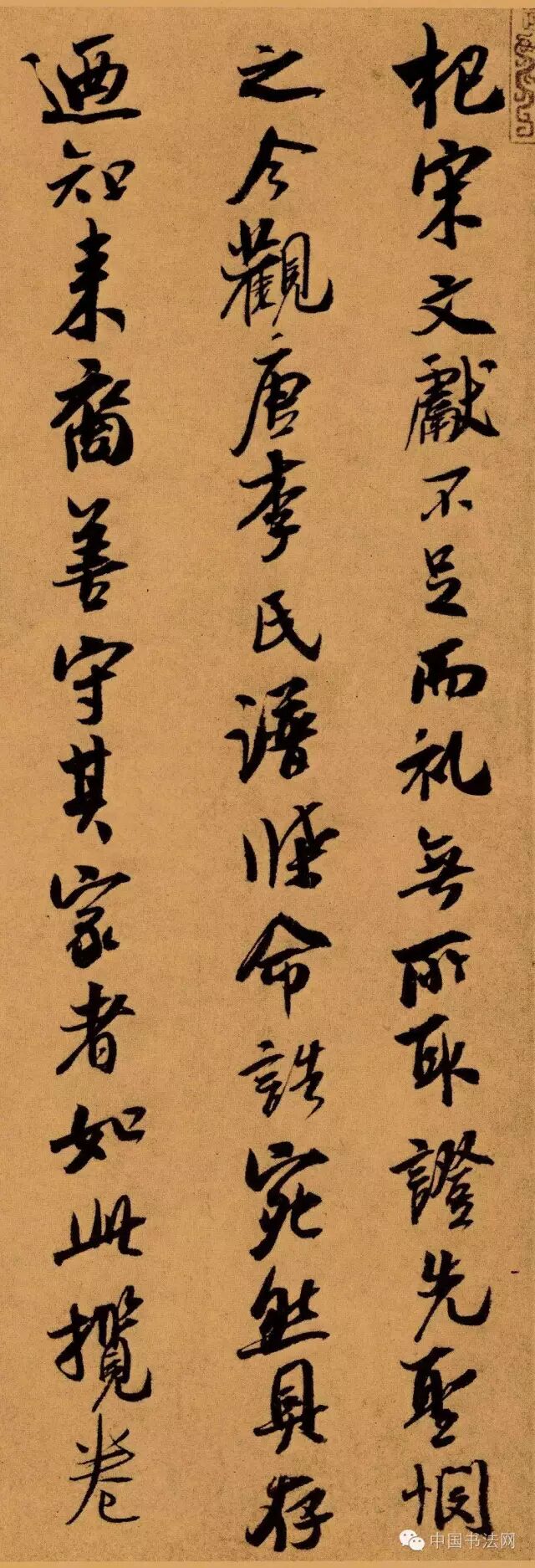 这幅书迹虽然均为小字行书,但字字写来,笔画之提顿跃动感十足,顿挫有致,墨色变化丰富。字之结体也非方正,常有偏斜体态,字态倾斜生姿,这也就是有所峻峭处的特色。整篇行气,虽然较米芾的书风含蓄,但通幅纵恣自如,也有一股潇洒意气。