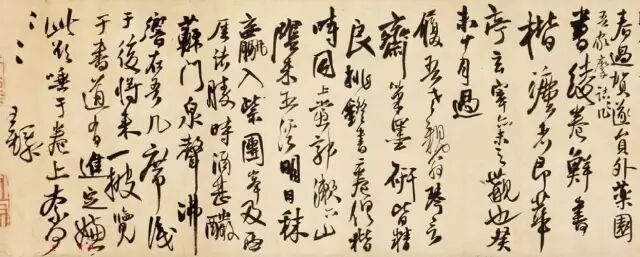 王铎楷书并不多见,他在跋中亦云:“书绫卷鲜书楷法者。”此卷书法雄健,取法颜柳,结字不求工整,大小欹侧,皆出于法度之外,但通篇观之,则气韵生动,古拙庄重。