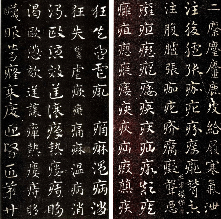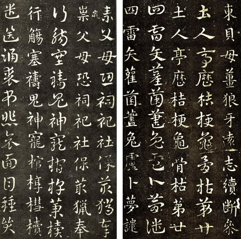 楷化也就是将张扬的隶之波磔削减逐步变为楷之撇捺,并有了侧(点)、啄(短撇)、趯(直钩)等楷书笔画,同时隶书“似八字势”(汉隶“八分”之称缘于此)的字型得以改观,结体上也更趋端严方整俊美。到了汉末、三国时期,楷书已开始定型,钟繇即为其奠基者。后王羲之进一步发展,日趋成熟。