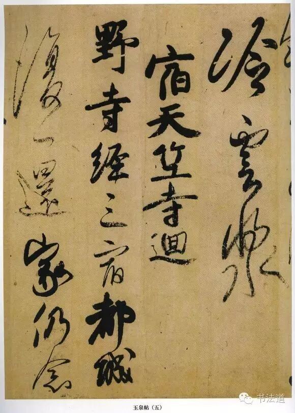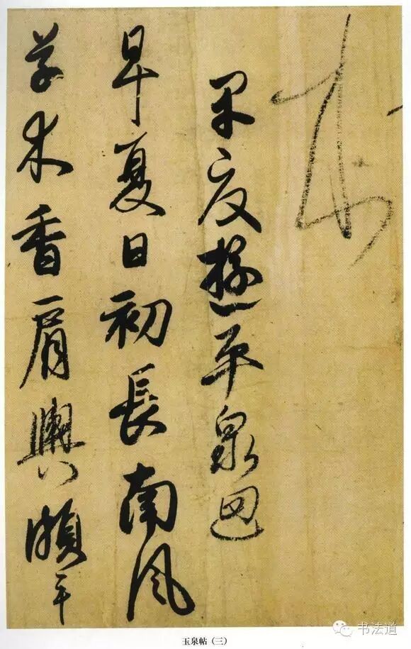 《玉泉帖》为其代表作之一,通篇由四枚楮纸组成,书写内容为白氏文集卷六十四中的四首诗,因首行有“玉泉南涧花奇怪……”而得此名。此作潇洒流落、自然洒脱,虽楷书、行书、草书相杂,极尽变化,却能合于自然。繁简、大小、断连、收放等对立关系处理的不漏痕迹,从中可看出他对王羲之、空海和怀素的借鉴参悟。在卷末自跋中他这样写道:“以是不可为褒贬缘,非例体耳。”