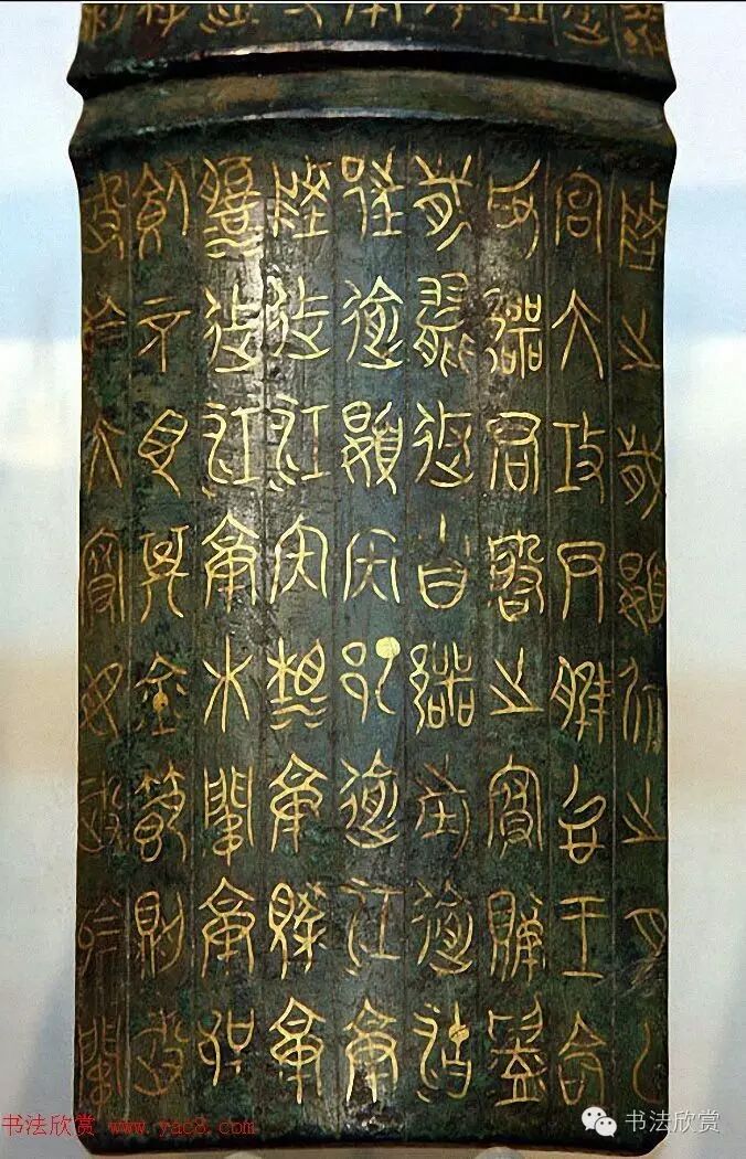 此“金节”用铜铸成,因形似劈开的竹节,故名“节”。这种“车节”和“舟节”,迄今为止仅此一见,因而极为珍贵。为防奸杜伪,在镶嵌工艺的基础上进行“错金银”再创作,故又称《错金鄂君启金节》。错金银也叫“金银错”,其方法是在青铜器铸造时铸出腰槽,将金银片、丝放入槽内,锤打后错实磨平。这一工艺是在春秋时期产生的,应用至今。《鄂君启节》铭文挺拔秀丽,圆润秀劲,庄严肃穆是错金铭文中的精品。