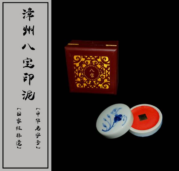 漳州八宝印泥是福建漳州传统的汉族工艺品,在古代属于贡品。中外书画家酷爱的珍品,是闻名中外的“漳州三宝”之一,素有“文房五宝”之称。十八世纪清乾隆时曾供皇家采购使用。漳州八宝印泥厂仍在生产。