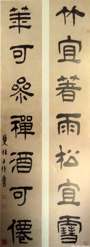金农作品:《漆书五言联》