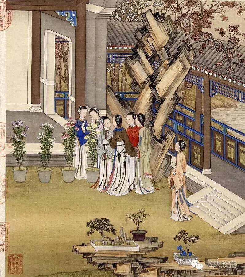 九月“重阳赏菊” 清 陈枚绘,梁诗正书