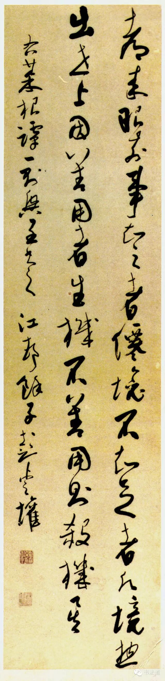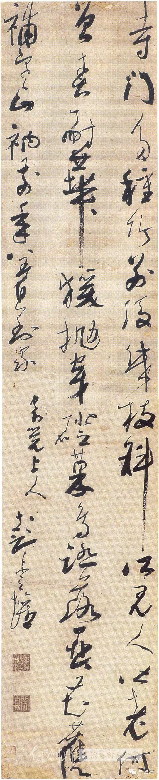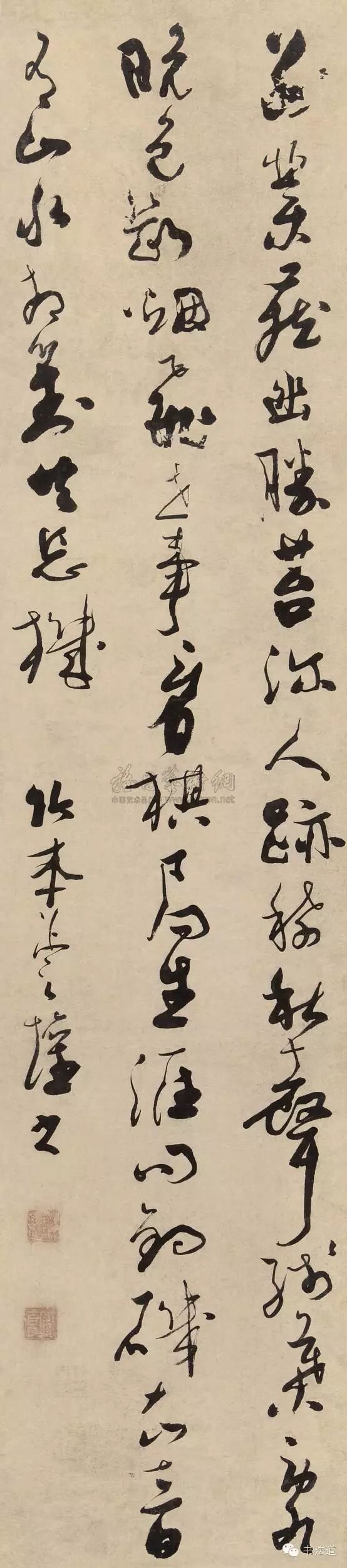 彭睿壦传世书迹不多,就笔者所编著之《广东传世书迹知见录》,公私藏家大致约三十件左右,最早的系作于康熙十五年(1676)的《草书诗册》(香港中文大学文物馆藏),最晚的为书于康熙三十二年(1693)的行草《刘长卿诗》轴(广东省博物馆藏)。他的作品时间跨度不大,早期和晚期的风格也相差不大。从其数十件作品可以看出,其书多纵笔取势,颇有明人草书风范。史书上并未记载关于他的艺术师承,但从书风看,确乎受到王羲之、怀素诸家影响而别具韵格,其结体、运笔均粗犷而率意。从运笔看,笔划有粗有细,收笔处较为尖细,墨色浓淡相参,整个字体布局如枯藤老树,初看如草草书就,实则笔势老辣,水到渠成。单从字体看,似乎不太像是用毛笔书成,更多地像是用竹笔,不过没有更多的文献资料作佐证。据此亦可看出彭氏在驾驭笔势方面的超常艺术技巧。