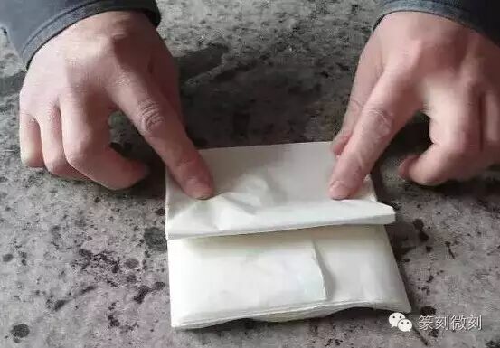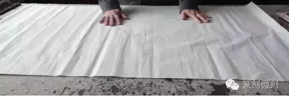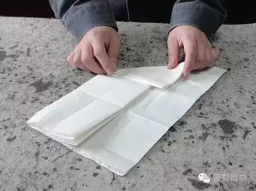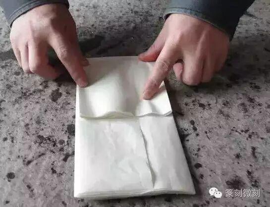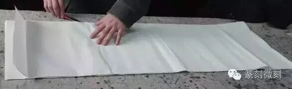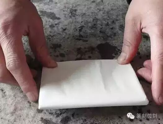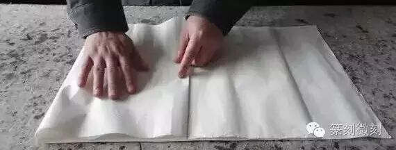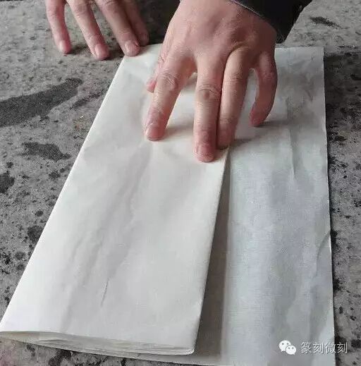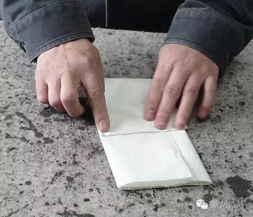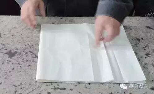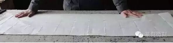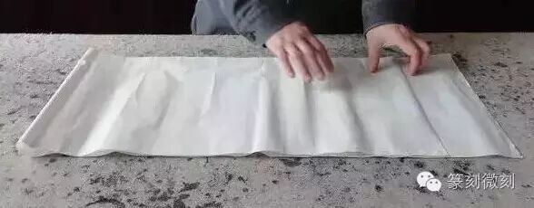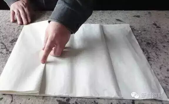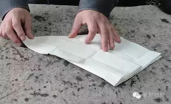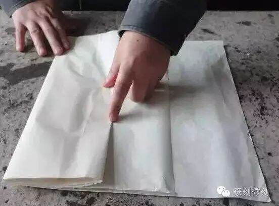 先竖折三等分,但左右留出边线(即:留适当的空白);再横折六等分(先対折,再三等分折,上、下也要留出边线,即:“天地”留适当的空白)。第一、二行各6个字,第三行2个字,接下的空格落款。