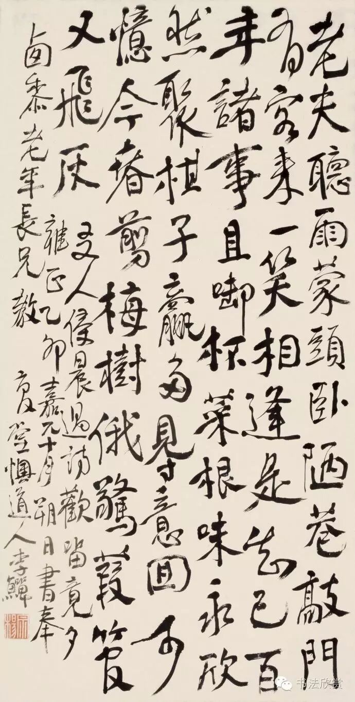 清 李鱓行书老夫听雨诗,125×63cm,1735年作,瀚海2011春拍,成交价103.5万元。