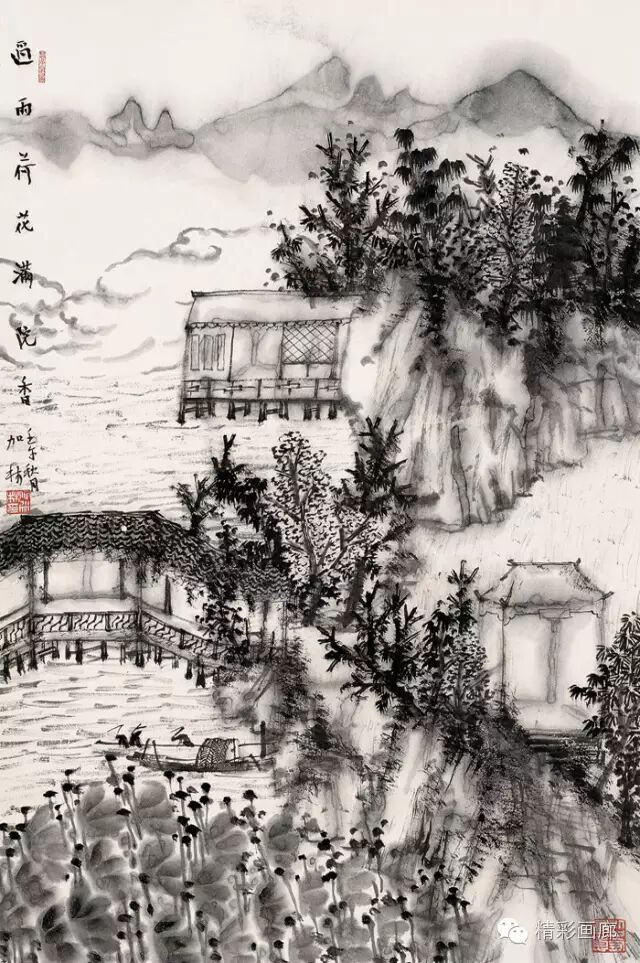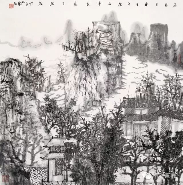 素材收集对水墨写生而言,主要是抓住自然山川的笔墨表现特征:虚实、枯湿、繁简、疏密、浓淡、远近、各种树石法的表象特征以及特有的生活气息和现场感受。作品可以是感觉的、不完整的、尝试性的。