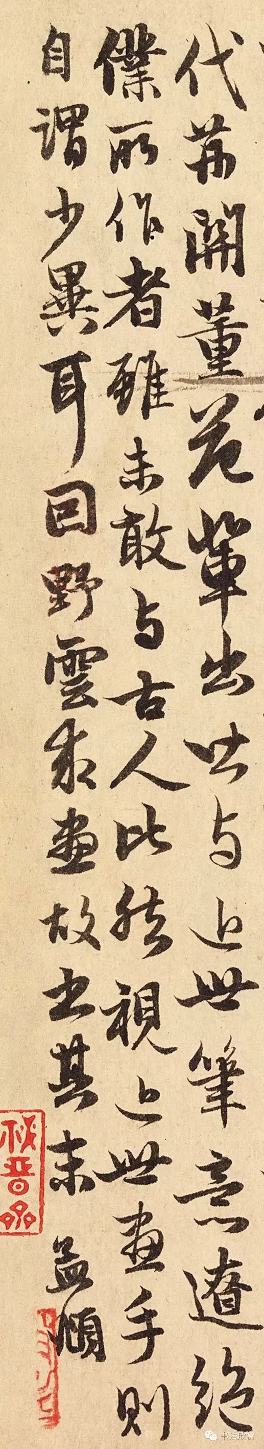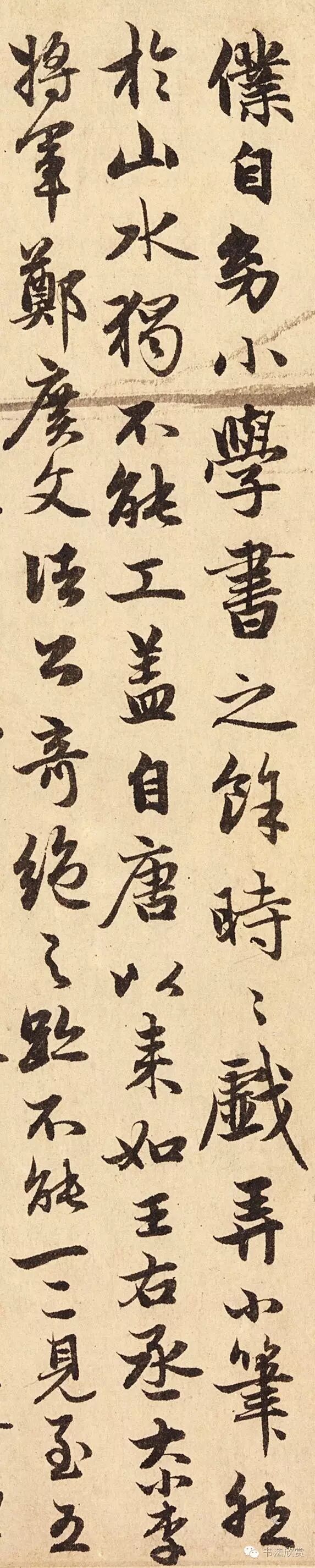 仆自幼小学书之余,时时戏弄小笔,然于山水独不能工。盖自唐以来,如王右丞、大小李将军、鄭广文诸公奇绝之跡,不能一二见。至五代荆、关、董、范辈出,皆与近世笔意辽绝。仪所作者,虽未敢与古人比,然视近世画手则自谓稍异耳。因野云求画,故书其末。孟頫