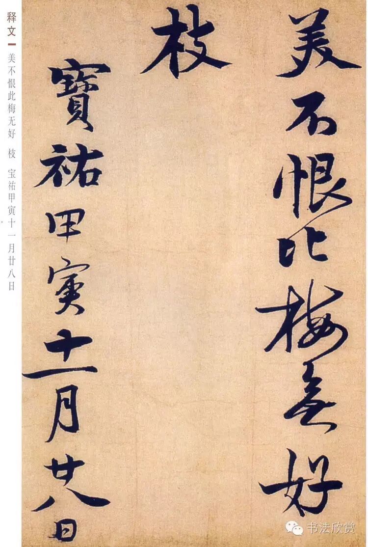 宝祐甲寅十一月廿八日午睡起,忽有持此纸来 者,因为书旧诗数首,用吴昇玉簪笔、唐端石执砚, 自好漫耳。观者未知为如何也,三十年临池所得仅 尔益信翰墨非易事,天与分数限量,更欲有加不可。 它时或更进,视此当一笑。或流落箱笥间,为吾爱 存之。无忽彝斋居士赵孟坚子固记。