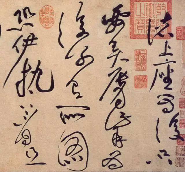 13、张长史折叉股,颜太师屋漏法,王右锥画沙.印印泥,怀素风鸟出林,惊蛇入草,索靖银钩虿尾,同是一笔法:心不知手,手不知心法耳。黄庭坚《论书》