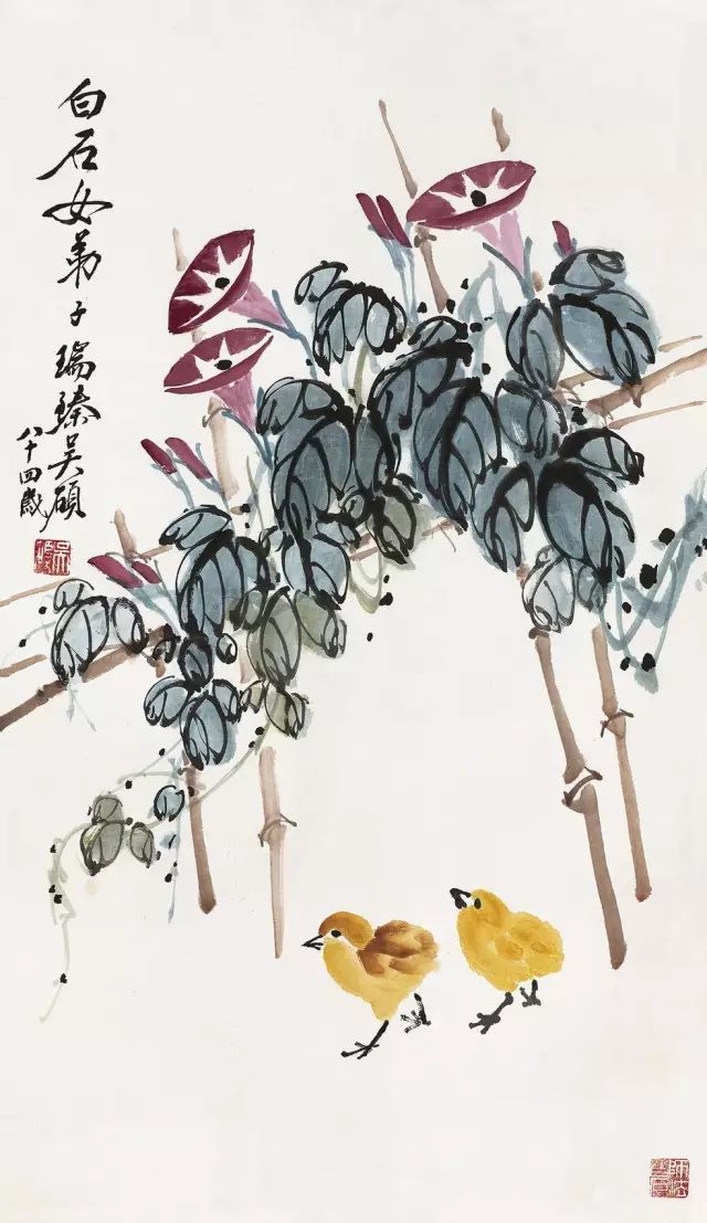 胡絜青(1905—2001),著名作家老舍夫人,中国画坛上一位杰出的女画家。1939年在北平结识齐白石,1951年正式拜师齐白石。