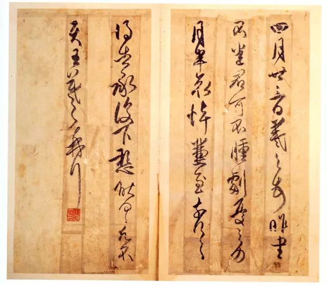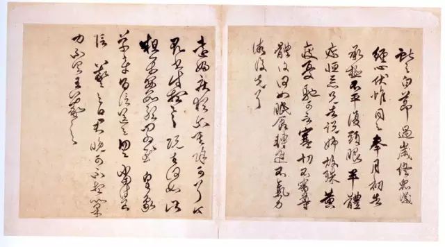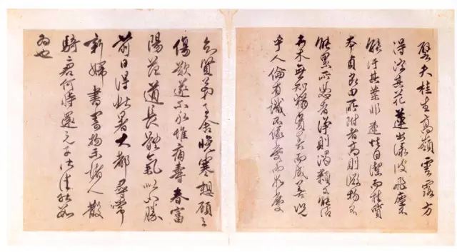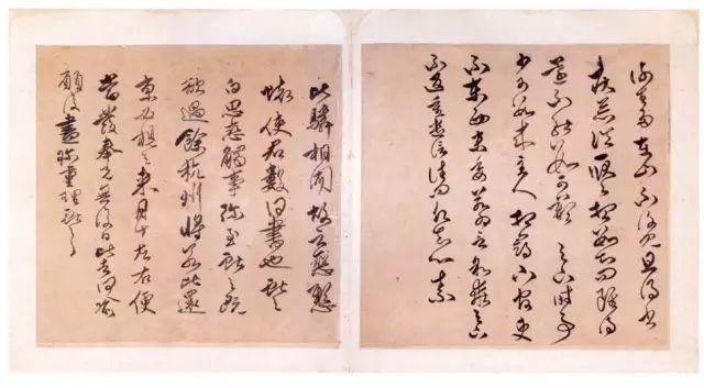 三、册页、手卷临作与巨幅大轴临作风格明显不同。纵观傅山存世的『二王』临作,我们发现一个有意思的现象:与巨幅大轴的『臆造性临摹』不同,傅山在手卷、册页上的临作基本忠实于所临的范本,如晋祠博物馆藏《临王羲之张令等帖手卷》(图十),是傅山七十三岁时所临,在近二米的长卷中临王羲之法帖八通。整幅作品基本忠实于所临范本,用笔精到,气息通畅,十分精美,显示了傅山扎实的基本功和在草书上的天赋。这类临作除了尺幅大小对作品风格的影响外,可能是傅山承袭传统的临摹观念,将临摹作为学书的手段,也可能是送给特别尊敬的人或亲密的朋友,故而写得非常认真。