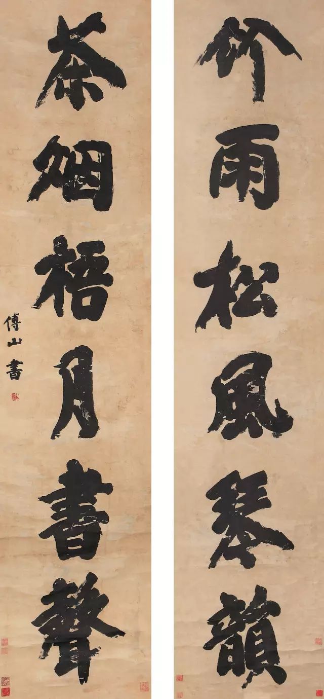 傅山《竹雨茶烟联》轴 纸本 225×44cm×2 山西晋祠博物馆藏