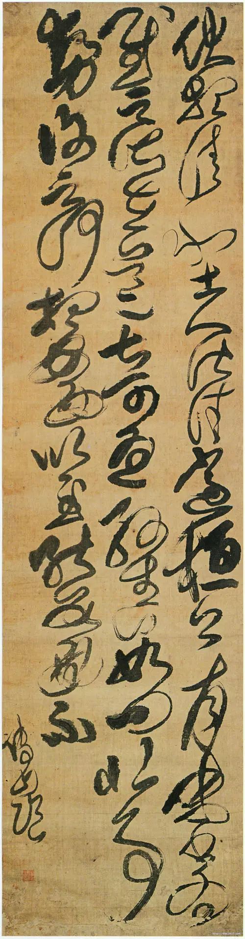 傅山 草书临王献之《安和帖》轴 绫本 192cm×47cm 山西省博物院藏