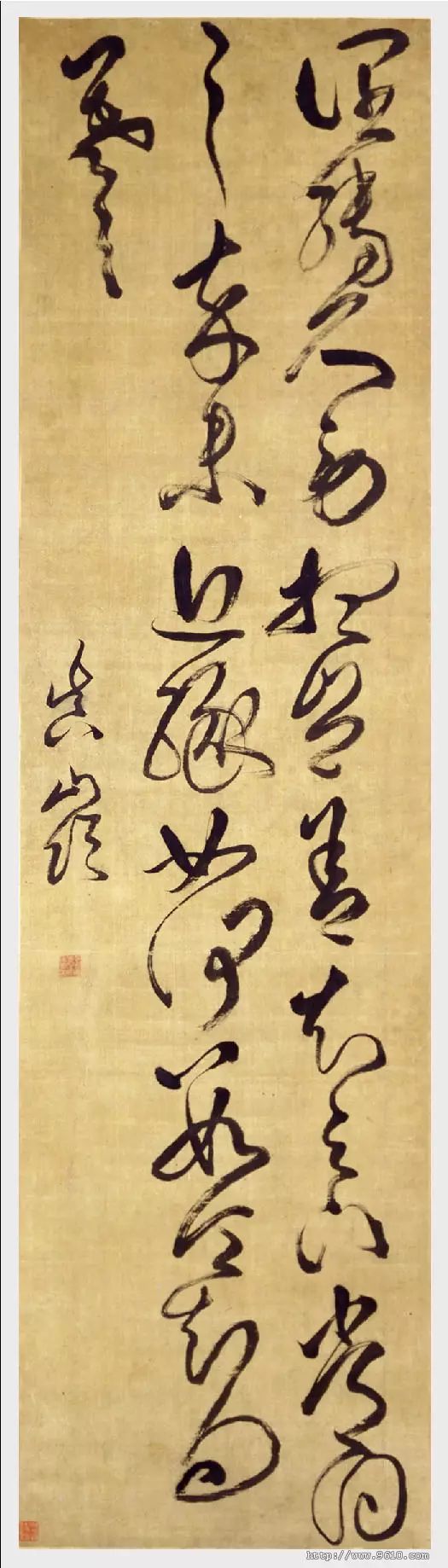 《草书临帖》轴,北京故宫博物院藏,绫本,纵162.2cm,横44cm。