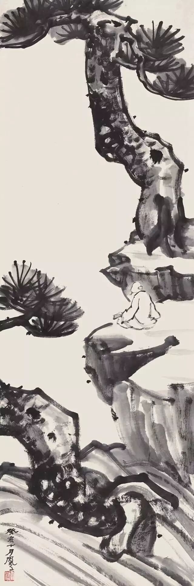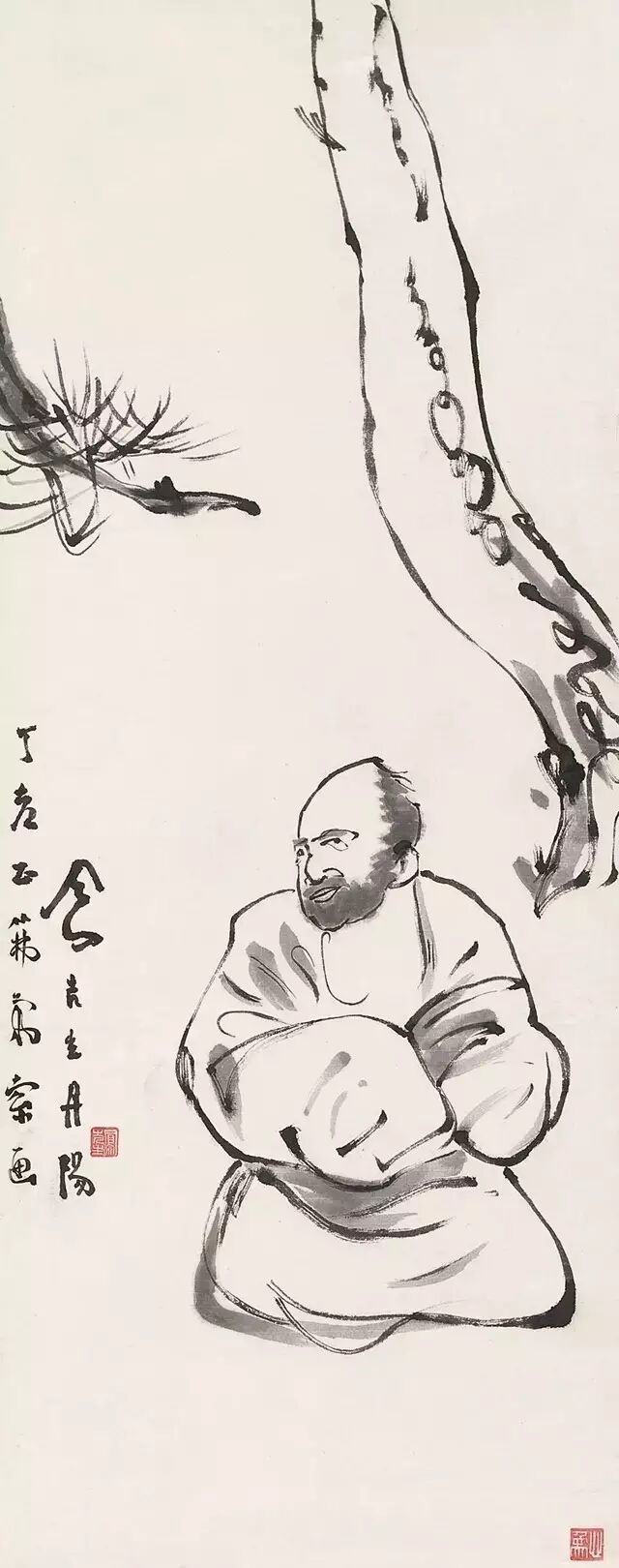 1959年夏,吕凤子先生肺癌已进入晚期,被困倒在病榻上。国庆节,他生命垂危,还要家人扶着,画了老松三幅,其中一幅《寿毛主席》,题字道: