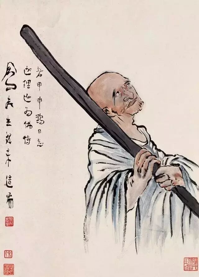 而他画罗汉,则是要通过罗汉的喜、笑、怒、骂,借助佛家的故事、典故,来反映社会现实。