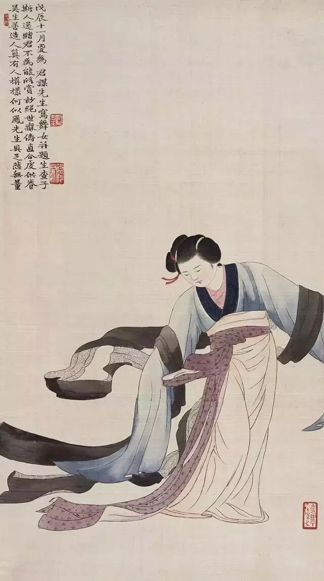 一般仕女图中的女子都是柔弱、矫揉造作的,但吕凤子认为女子的“真”是第一位的,要真、要善、要美,他不要女性病态、妖态的美。他在画女子时和画男子不一样。中国有一种画法叫“吮毫”,就是把毛笔用口水吮一吮,这样再来画女子脸部,会感到线条非常丰润。