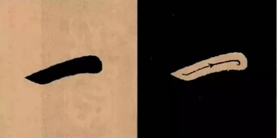 尾部由中间出锋的点 渐铺毫,至尾部提笔由中间出锋。