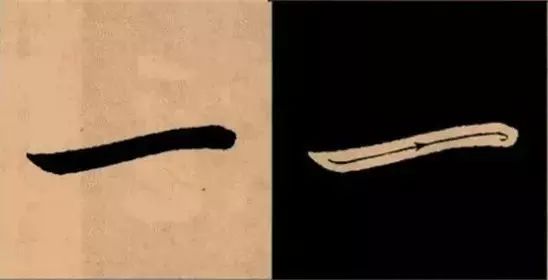 回锋钩 至钩处,向左稍行不钩出,圆转回锋,势启下一笔画。