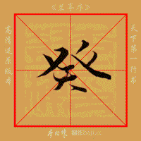 短捺 短壮有劲,收笔须嘎然而止,往右下微出锋。