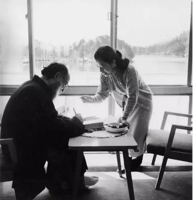张大千与山田喜美子的相识大约是在1953年,那时候张大千54岁。1949年以后,张大千移居海外,经常到日本购买绘画用具或装裱字画,下榻偕乐园。山田喜美子小姐便是在此时照顾张大千的起居生活,二人情愫日笃,甚至约定每周一信。张大千在诗中写道:“亲辇名花送草堂,真成白发拥红妆;知君有意从君笑,笑我狂奴老更狂”,他每来日本必要喜美子相随,前后历十余年。喜美子对这段感情也是无比看重,将这些来信珍藏一生直至辞世。