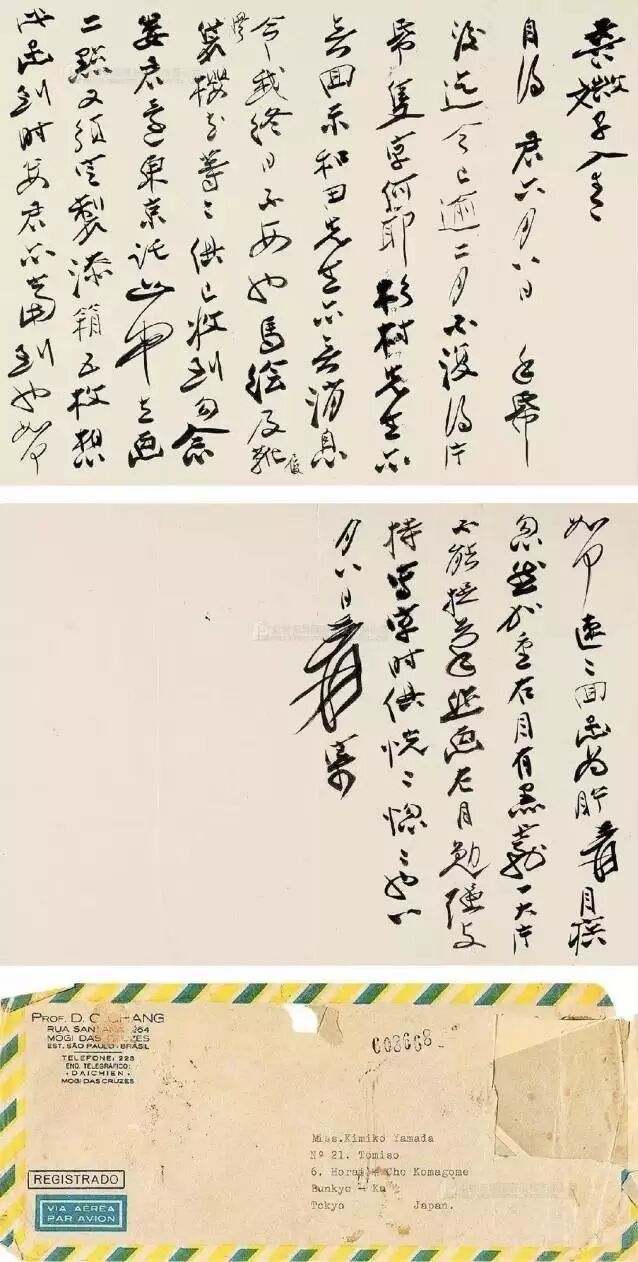 出乎意料的是,张的夫人徐雯波并没有因此而责怪丈夫。很多信札甚至都是雯波夫人和张大千合寄的,徐甚至还买了海水蓝宝石送给喜美子。