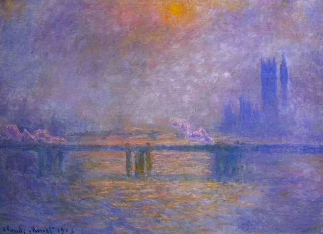 曾经的伦敦人为了生计谁也不知道雾是紫色的,但看到莫奈在“国会大厦”系列作品中把伦敦的雾画成紫红色,伦敦人异常愤怒。不过,后来他们发现莫奈是对的,继而莫奈被称为“伦敦雾”的创始者。