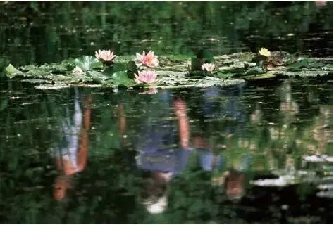 而睡莲池畔的植物,则可以透过水面的反射,