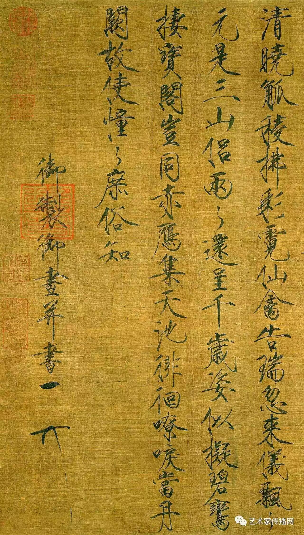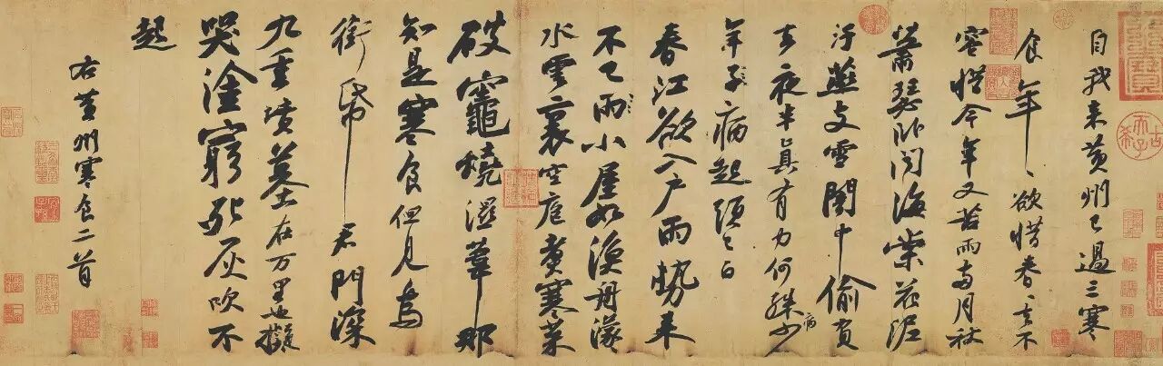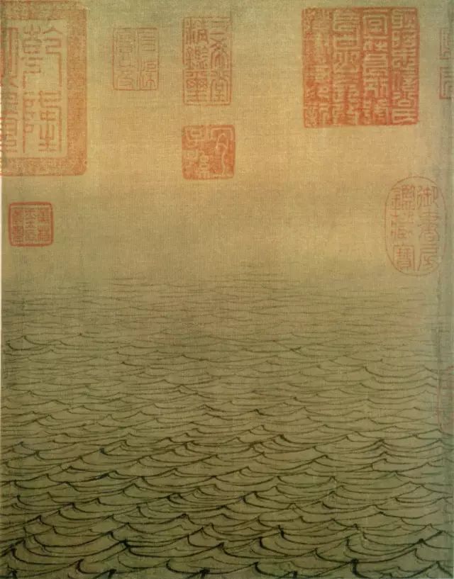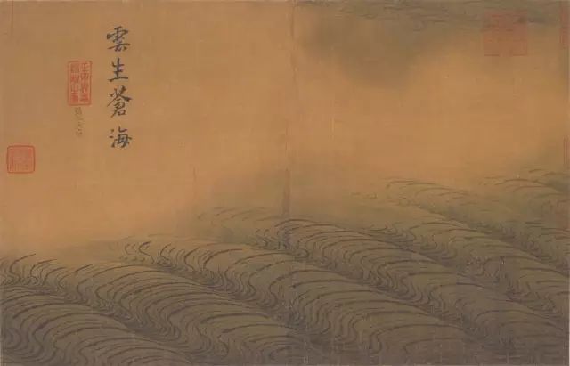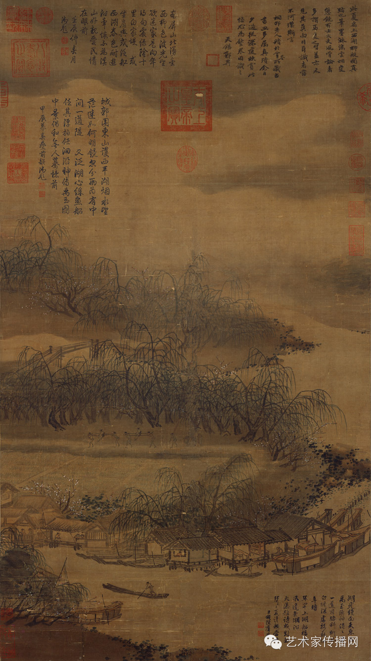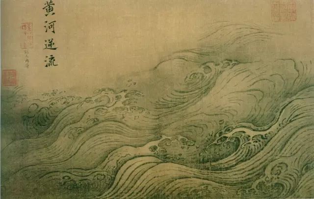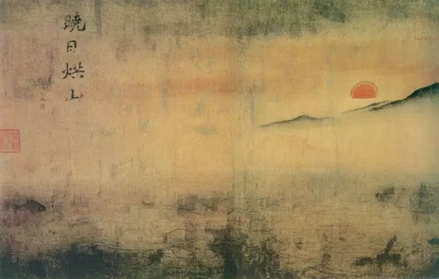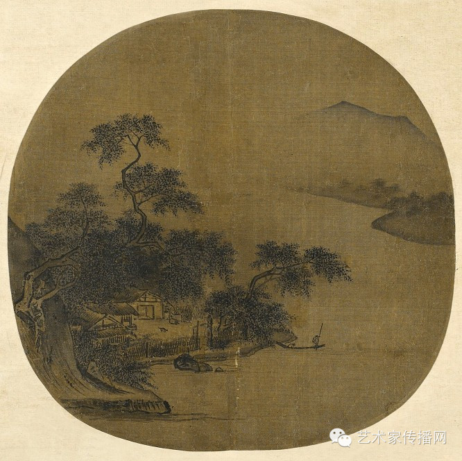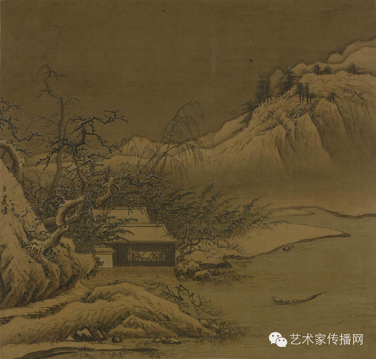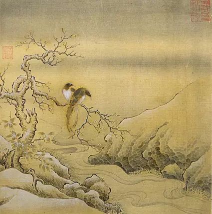 岸石上覆盖积雪,画家以水墨烘染阴天,