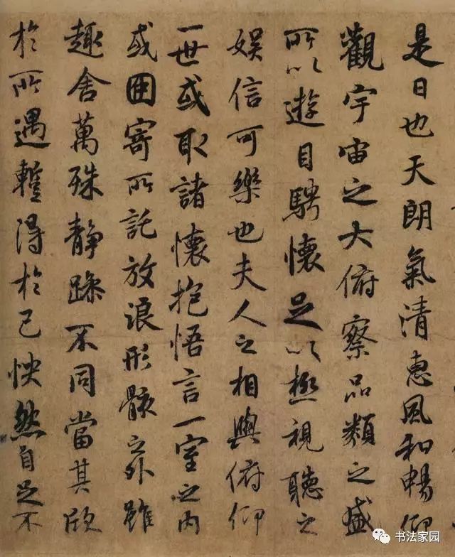 是日也,天朗气清,惠风和畅。仰观宇宙之大,俯察品类之盛。所以游目骋怀,足以极视听之娱,信可乐也。