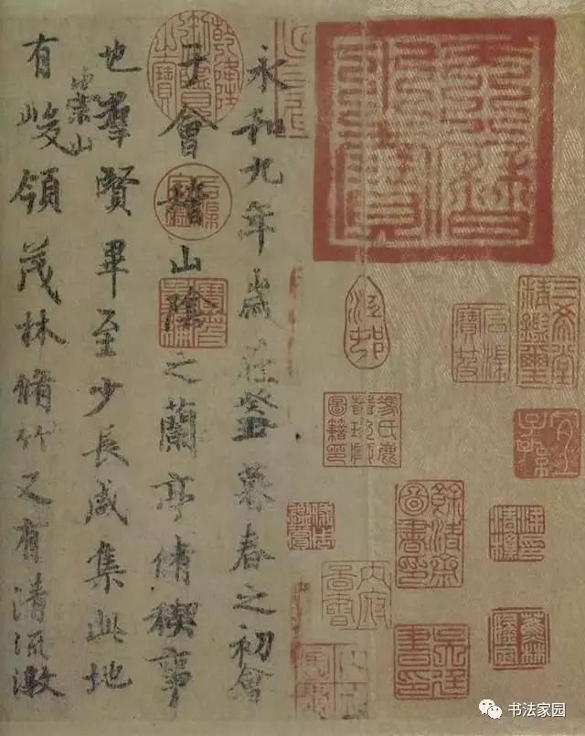 永和九年,岁在癸丑,暮春之初,会于会稽山阴之兰亭,修禊事也,群贤毕至,少长咸集。此地有崇山峻岭,茂林修竹;又有清流激湍,映带左右,引以为流觞曲水,列坐其次。虽无丝竹管弦之盛,一觞一咏,亦足以畅叙幽情。