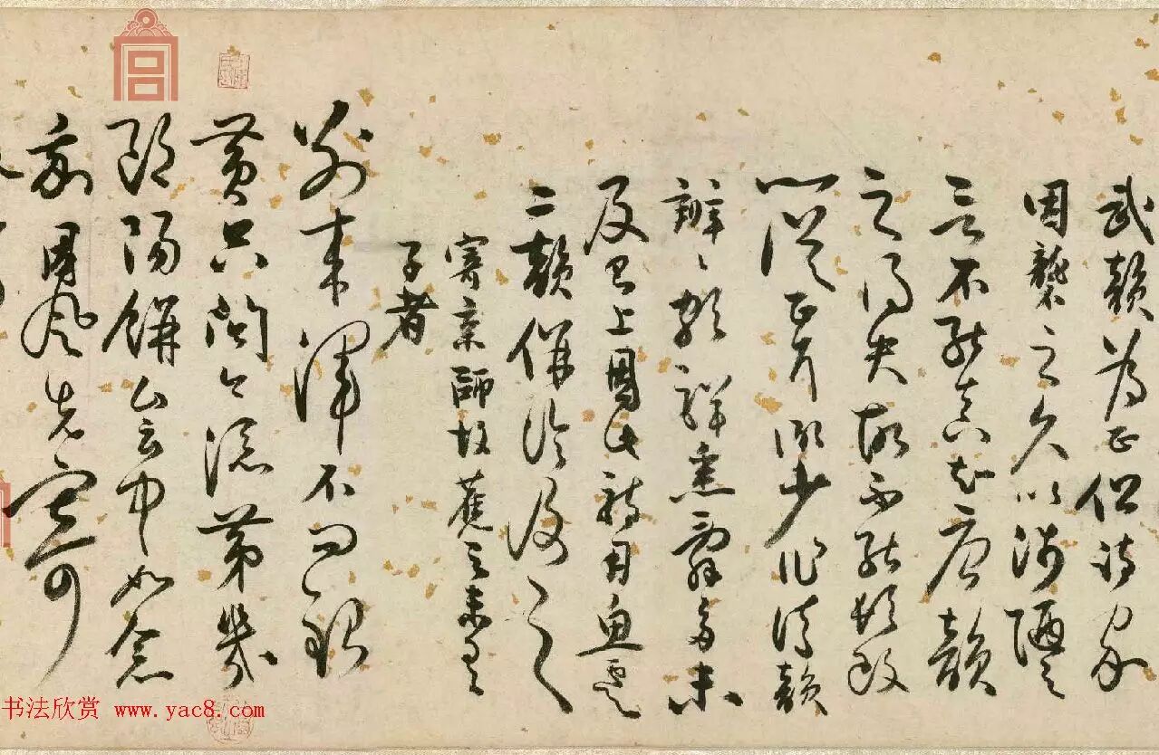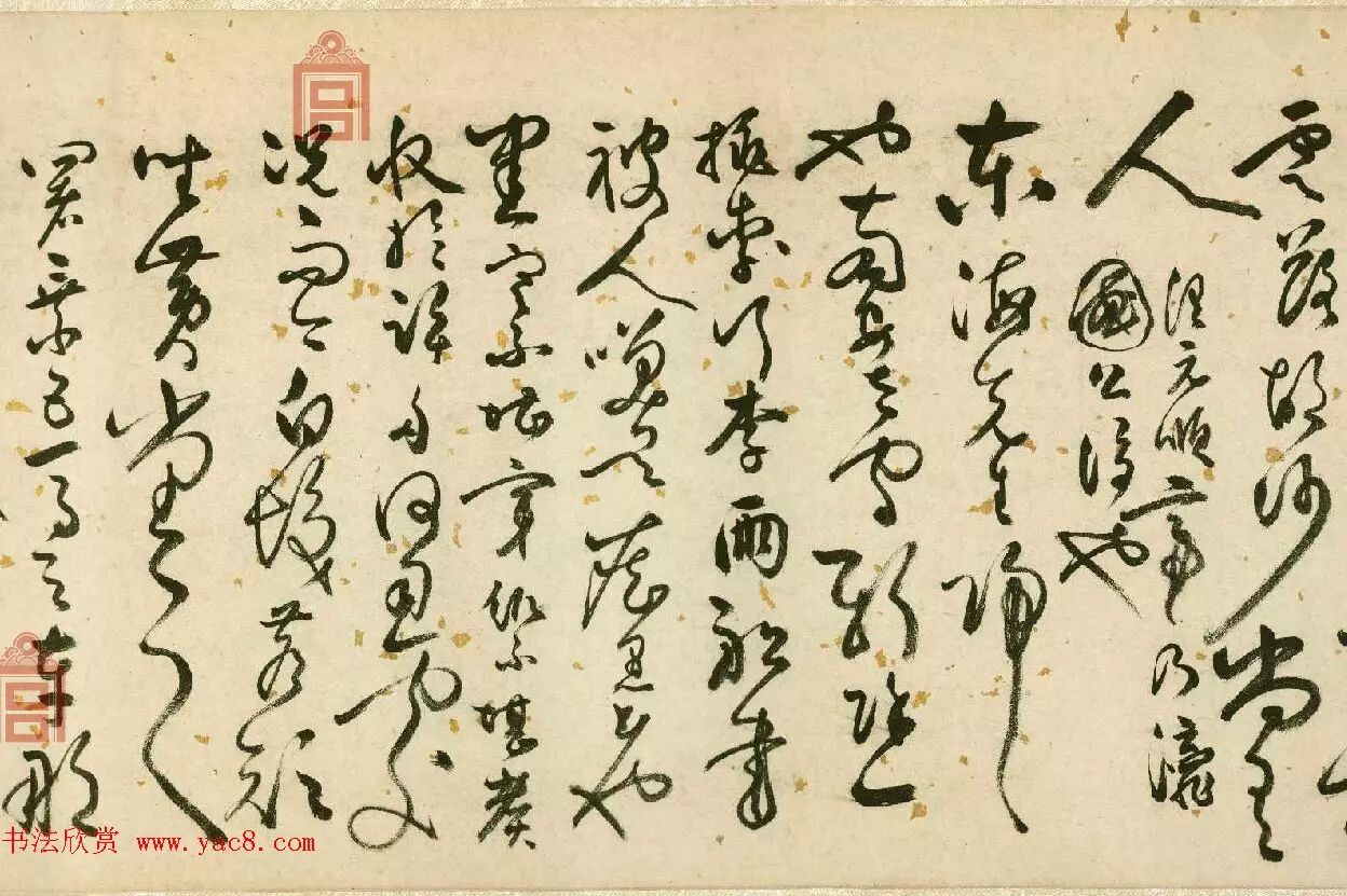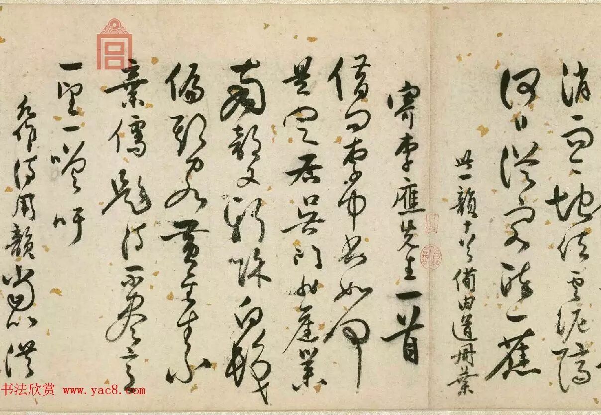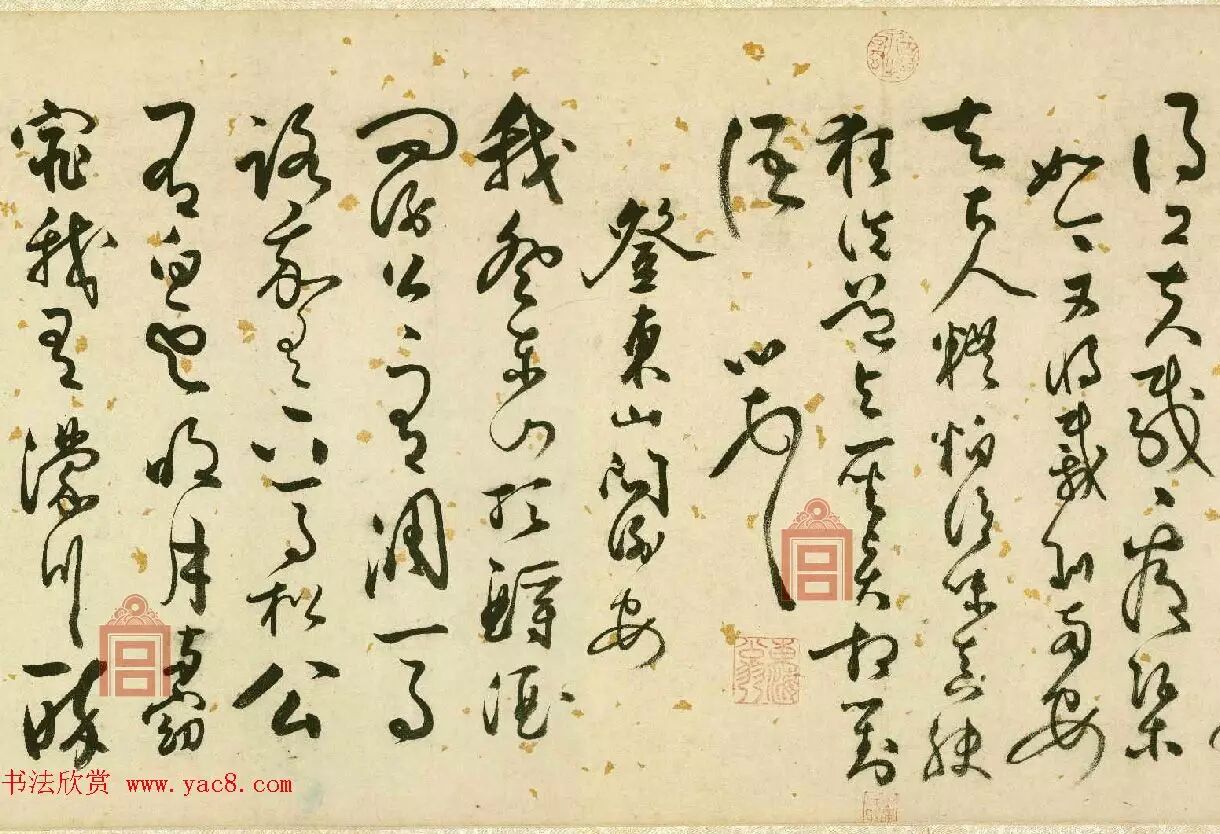明代张弼56岁行草书诗文卷,洒金笺纸本,纵29.5厘米,横589厘米,北京故宫博物院藏。《行草诗文卷》是张弼自作诗7首,分五言诗和七言诗及短文5则,书于明成化十六年(1480年)庚子六月,此卷书法用笔奇崛,线条流畅,牵带笔处挥洒自如,使转生动活泼,气势贯通,变化丰富,为其晚年书风的代表作。