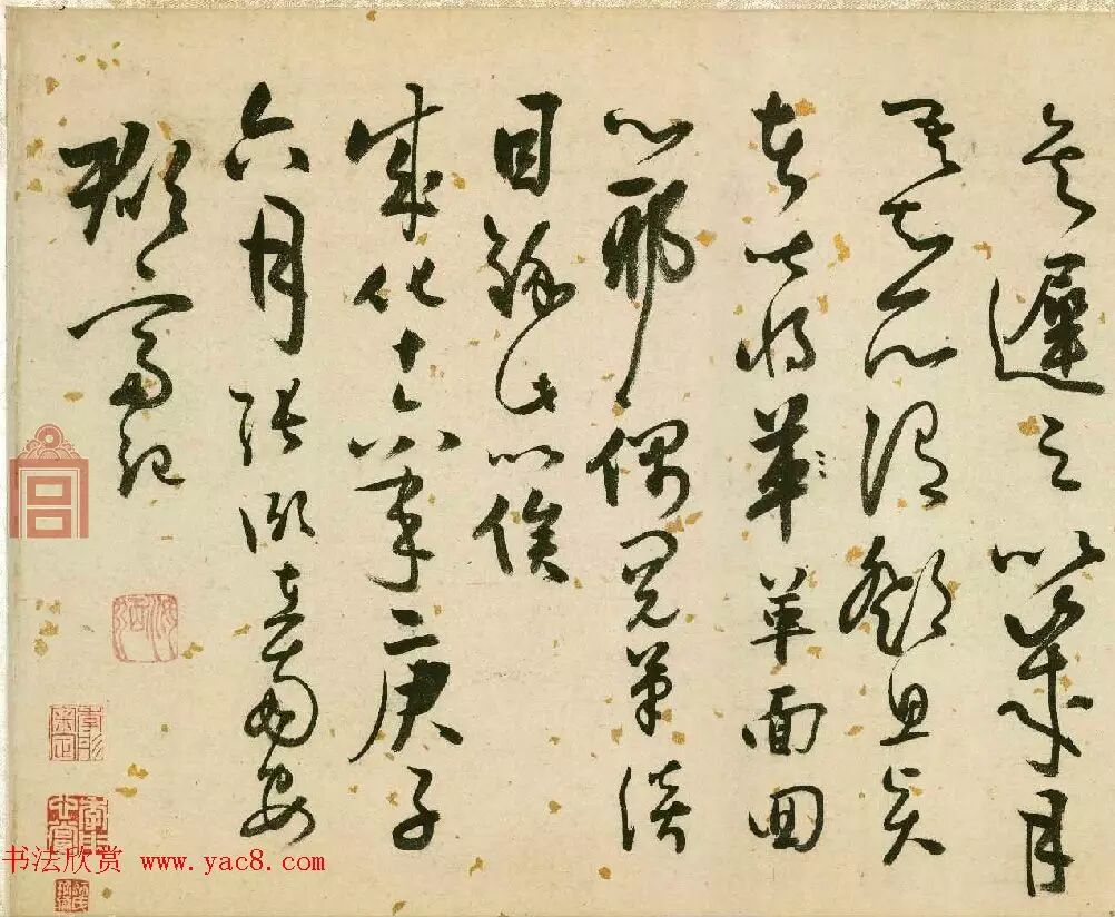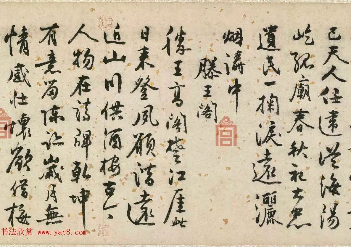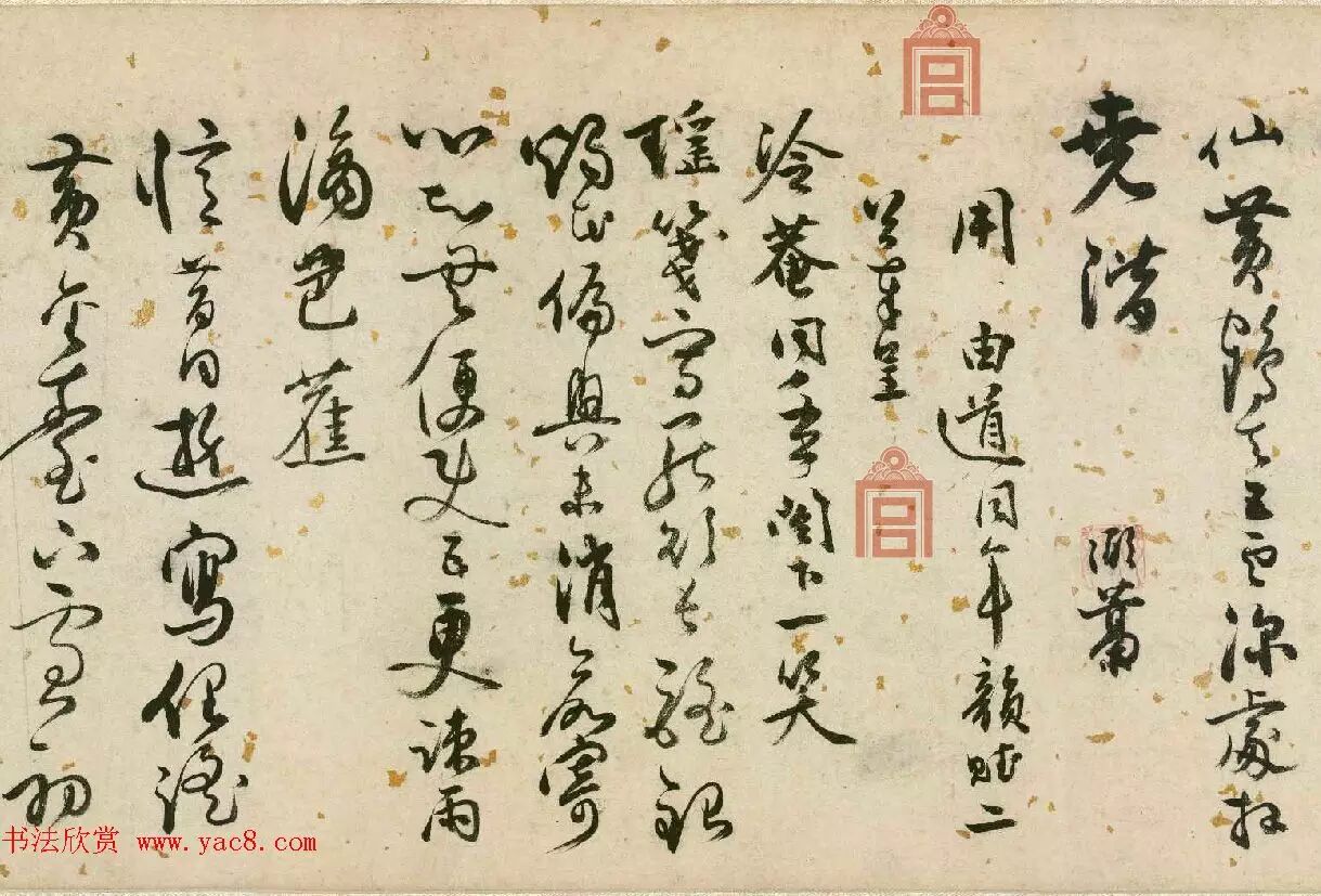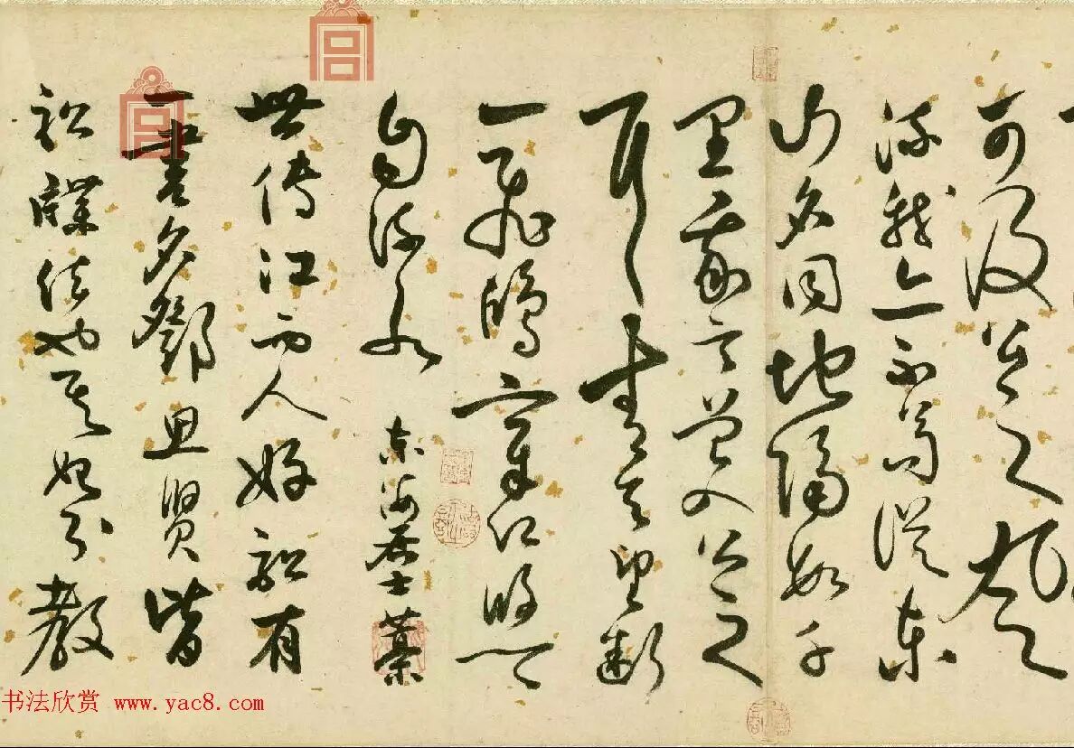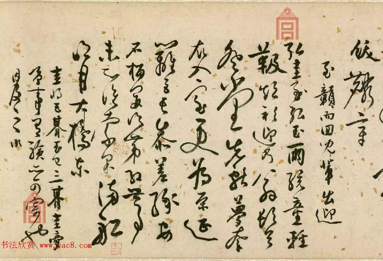明代张弼56岁行草书诗文卷,洒金笺纸本,纵29.5厘米,横589厘米,北京故宫博物院藏。《行草诗文卷》是张弼自作诗7首,分五言诗和七言诗及短文5则,书于明成化十六年(1480年)庚子六月,此卷书法用笔奇崛,线条流畅,牵带笔处挥洒自如,使转生动活泼,气势贯通,变化丰富,为其晚年书风的代表作。