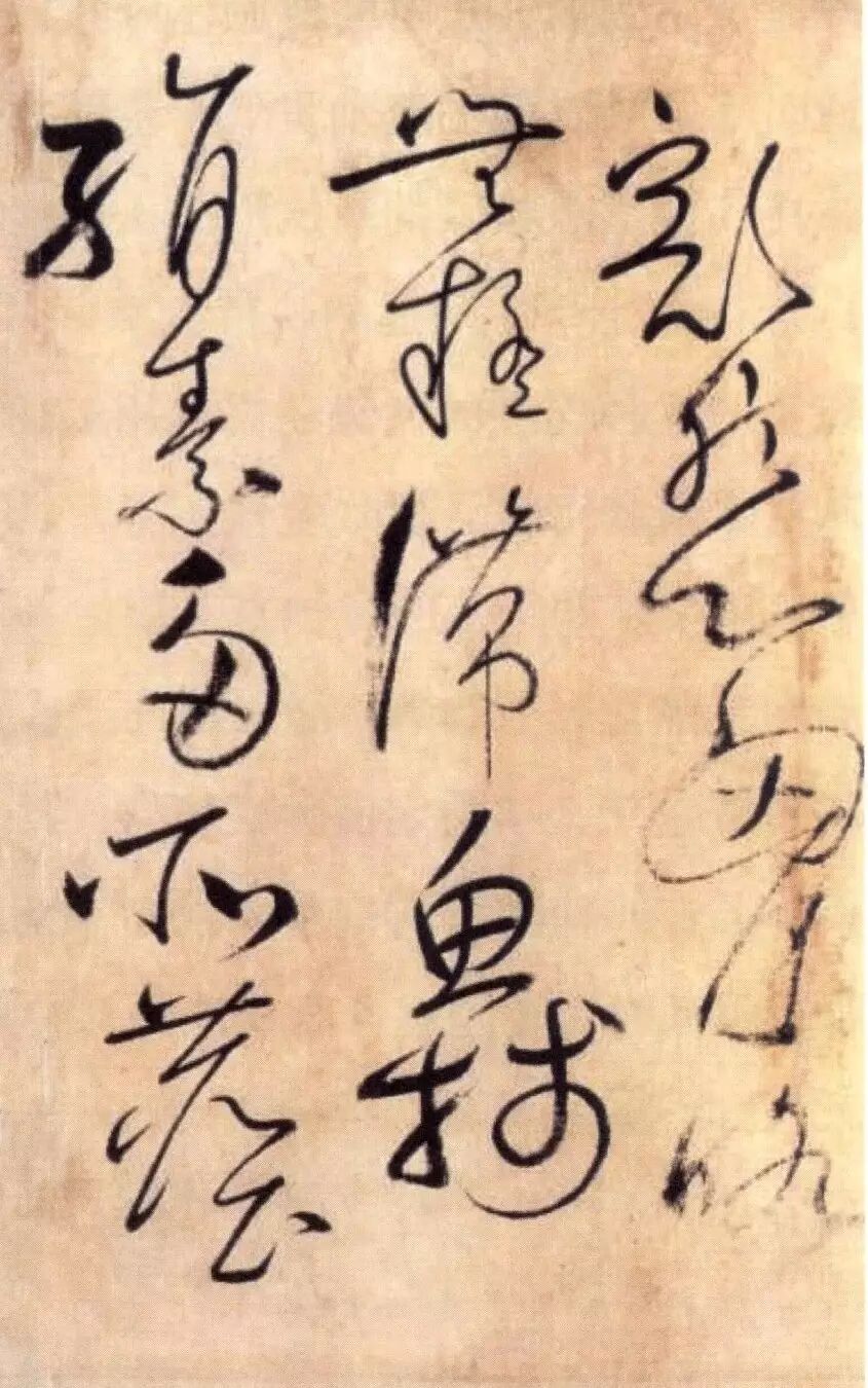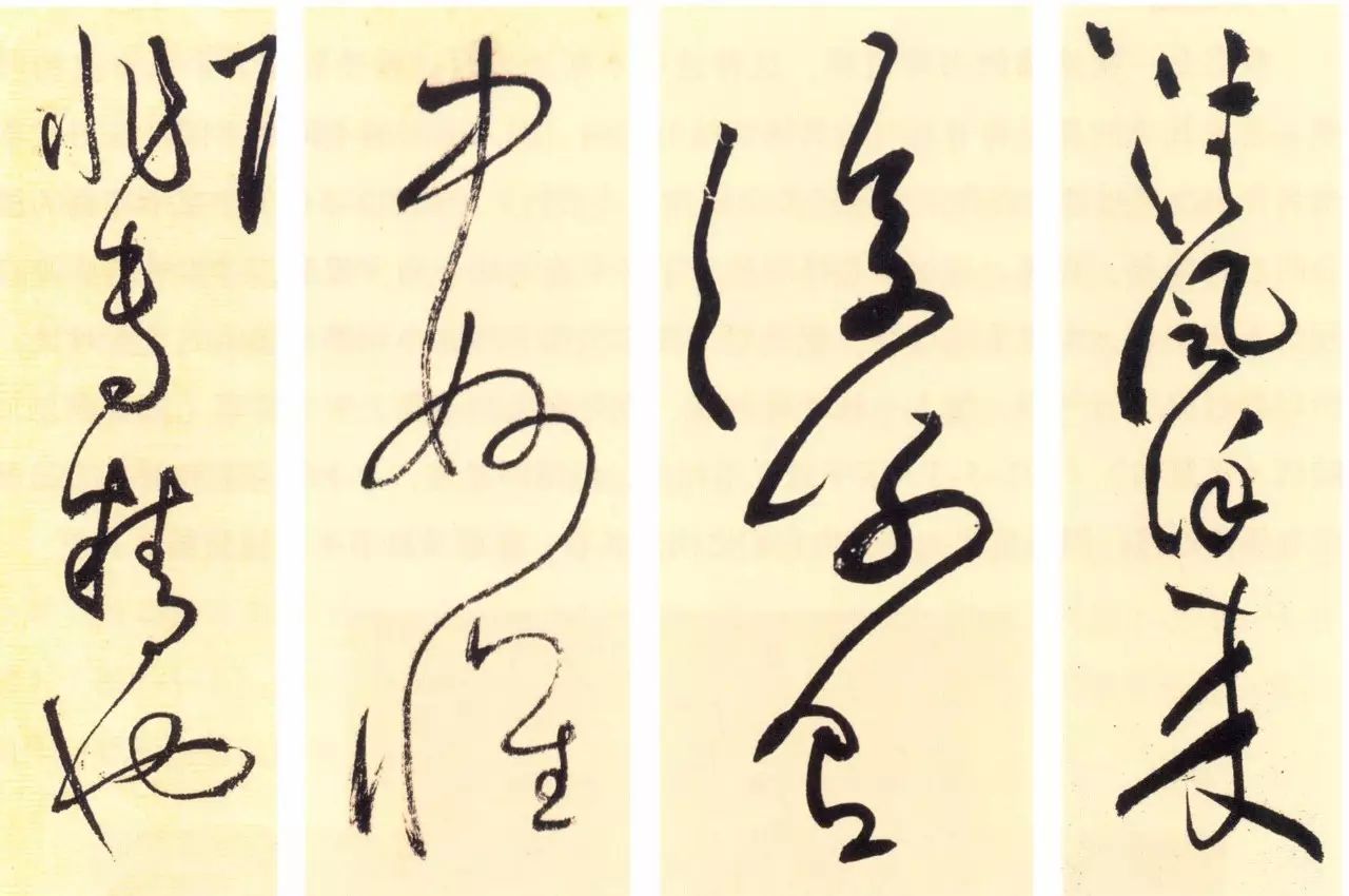 节奏段落,也有称为“小组合”的,往往是几个字为一组的连续书写,或关系密切的字形间相互照应。这个组合,在草书中常常表现在一次行笔的停顿,通常是一次蘸墨的停顿。草书的单字之间总是形成一组组关系极为密切的组合。如《书谱》“非专精也”四个字(图1),连绵的牵丝引带组成了一个平稳的节奏段落,四字间的相互欹正关系,组成一个不可分的整体,这种节奏段落的小组合在狂草中更为明显。如怀素《自叙帖》“中妙怀”三字组合(图2),黄庭坚《诸上座帖》“复别有”三字组合(图3),这两个组合都是明显的节奏段落,三字间的首尾连线在一起,笔画运动的过程没有停顿,是一个运动的整体。