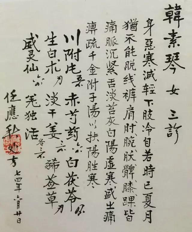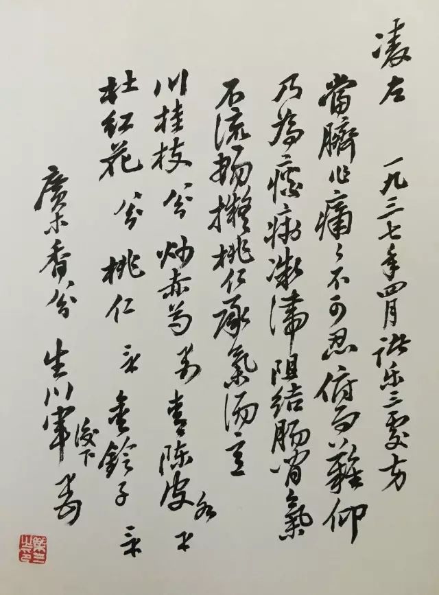 精美的花笺,娟秀的字迹,配以实用的处方,药材间的留白,篆刻的提示语,虽无意安排,却成了章法多变的书法小品,着实耐看。