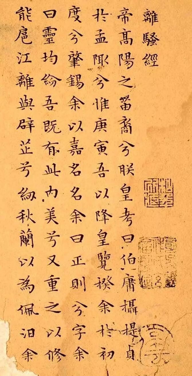 文征明书屈原《离骚》。纸本,总计248行,2476字。卷末署“嘉靖乙卯二月既望”为文征明86岁晚年书法作品。此卷-气呵成,精妙清新,流畅之至,毫无疲倦之意,令人赞叹。