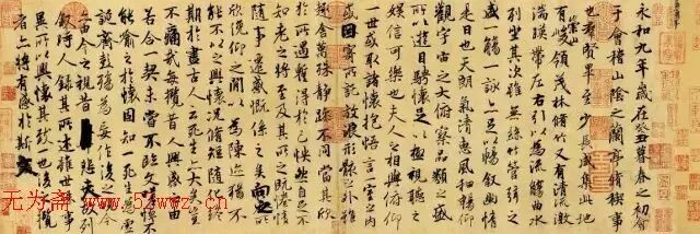 史书记载,宋人赵子固携《兰亭序》拓本和其他书画乘船过升山,中途遇上大风,船翻没了,人也差点丧了命,所携书画仅有《兰亭序》从水中捞出。他庆幸地说:“《兰亭》在矣!余不足论。性命可轻,此宝是宝!”这就是《定武兰亭》。