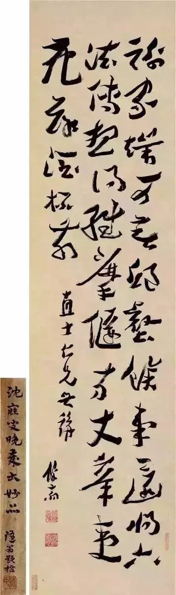沈曾植为学博雅,知类通达,开物成务。精通史学、法学、经学、考据、道藏、佛学、乐律等学问,识见宏远,被赞为“同光朝第一大师”。沈氏一生大部分时间用于政务和学问上,书学乃是余事,但先生学养深厚,笔下生风,别俱面?。金蓉镜称:“先生早精帖学,得笔于包安吴,壮嗜张廉卿”。即说沈氏早年学淳化阁帖,二王及唐楷,后得益于包世臣、张裕钊。马一浮说先生还学习过欧阳通的《道因法师碑》。沈先生学书经历比较复杂,在先生的题拔书信中,可见先生钻研过 章草、简牍和经体,其中还有黄山谷和米芾的影子。先生写字强调变化,抒发胸中之奇,几忘纸笔,心行而已。受到当时书法界的推崇,海内外求其字者颇多。先生以草书著称,取法广泛,熔汉隶、北碑、章草为一炉。碑、帖并治,尤得力于“二爨”,体势飞动朴茂,纯以神行。个性强烈,为书法艺术开辟出了一个新的境界。