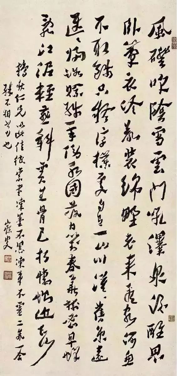 被称为“一代硕儒","三百年来第一人","同光朝第一大师”的沈寐叟,沈曾植先生是也。清末民初书坛,沈曾植当推为巨擘。康有为素来自负,但多次在文章中提及沈对他书法的影响,对沈氏极为推崇。认为其“行草书,高妙奇崛,与颜平原、杨少师争道,超佚于苏黄,何况余子”。王国维为“沈门三君子”之一,与晚年沈曾植先生接触较多,经常看沈氏作书,曾有诗赞沈的书法:“古意备张索,近势杂倪黄”。王邃常先生回忆说:“先生晚年自行变法,冶碑帖于一炉,参分隶加以变化,益见古健奇崛”。后学弘一、余绍宋、郑诵先、马一浮、谢无量、陆维钊、沙孟海等人均受其书风影响。