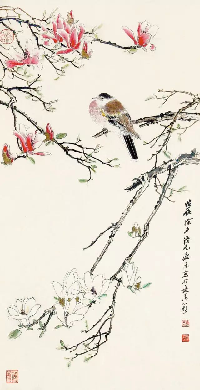 《木笔纹鸠》 纸本设色 105×54cm