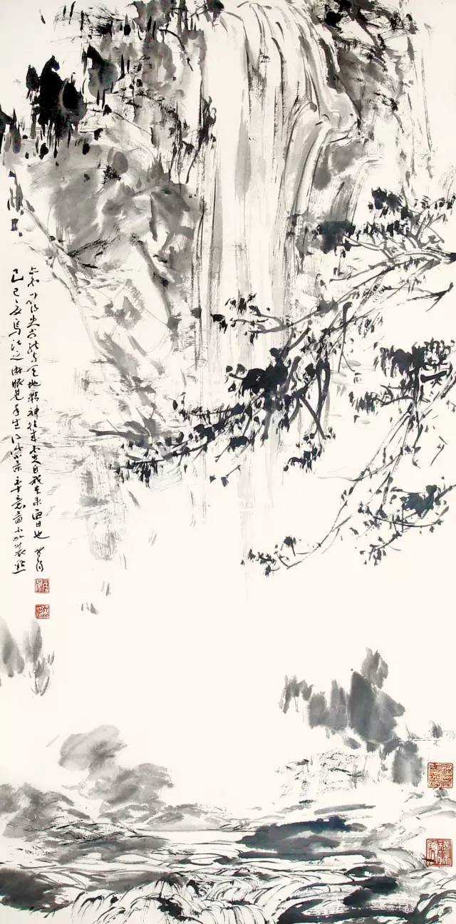 《瀑布图》 纸本设色 137×68cm