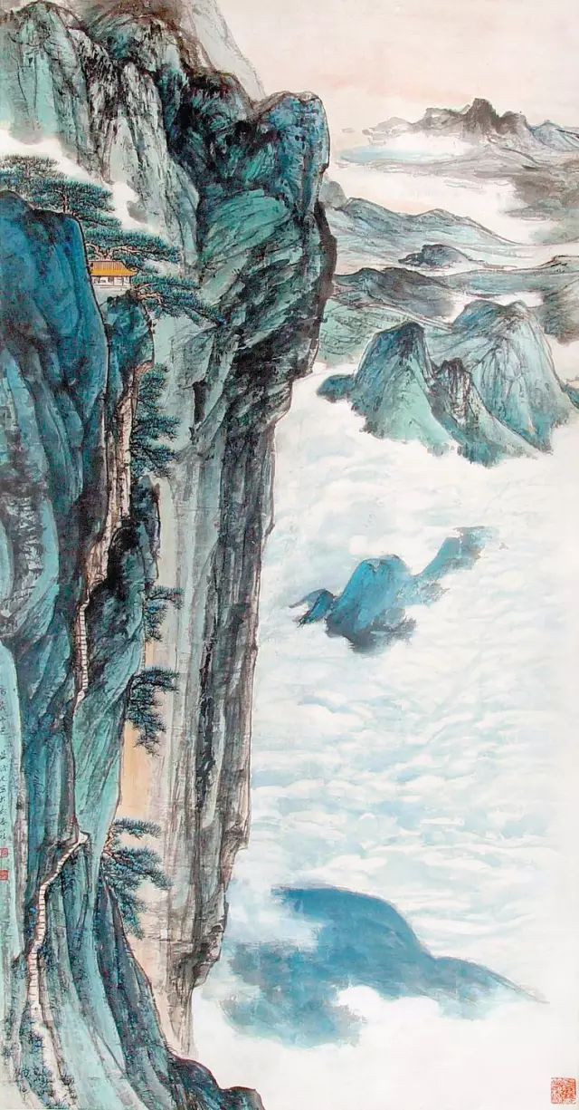 《凌高极目》 纸本设色 179×95cm