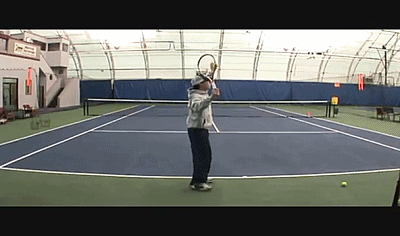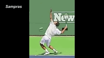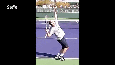 弓背为发球挥拍加速度提供了更大的空间,提供了回转的动力