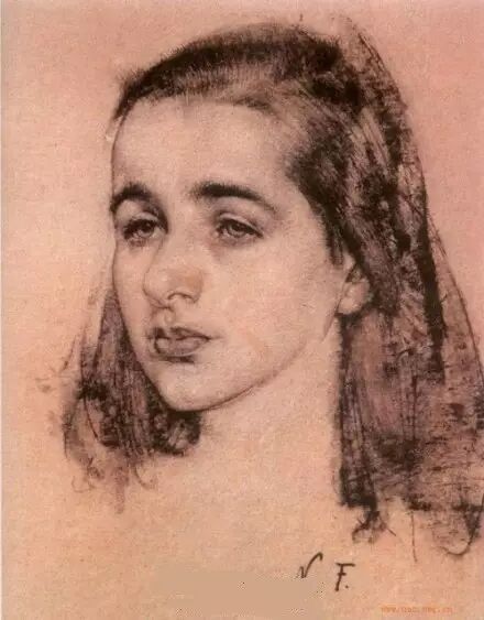 尼古拉·费欣(1881-1955),俄裔美籍画家,出生在俄罗斯喀山的木雕工手艺人家庭,列宾的学生,作品别具一格,代表作有《秋天》、《卡努里雅肖像》、《父亲像》等。他的画色彩明快、明暗对比响亮,表现力强。他素描受东方传统绘画的影响,素描头像用炭笔画在坚实光滑的纸上,自成一家,刻画深刻。
