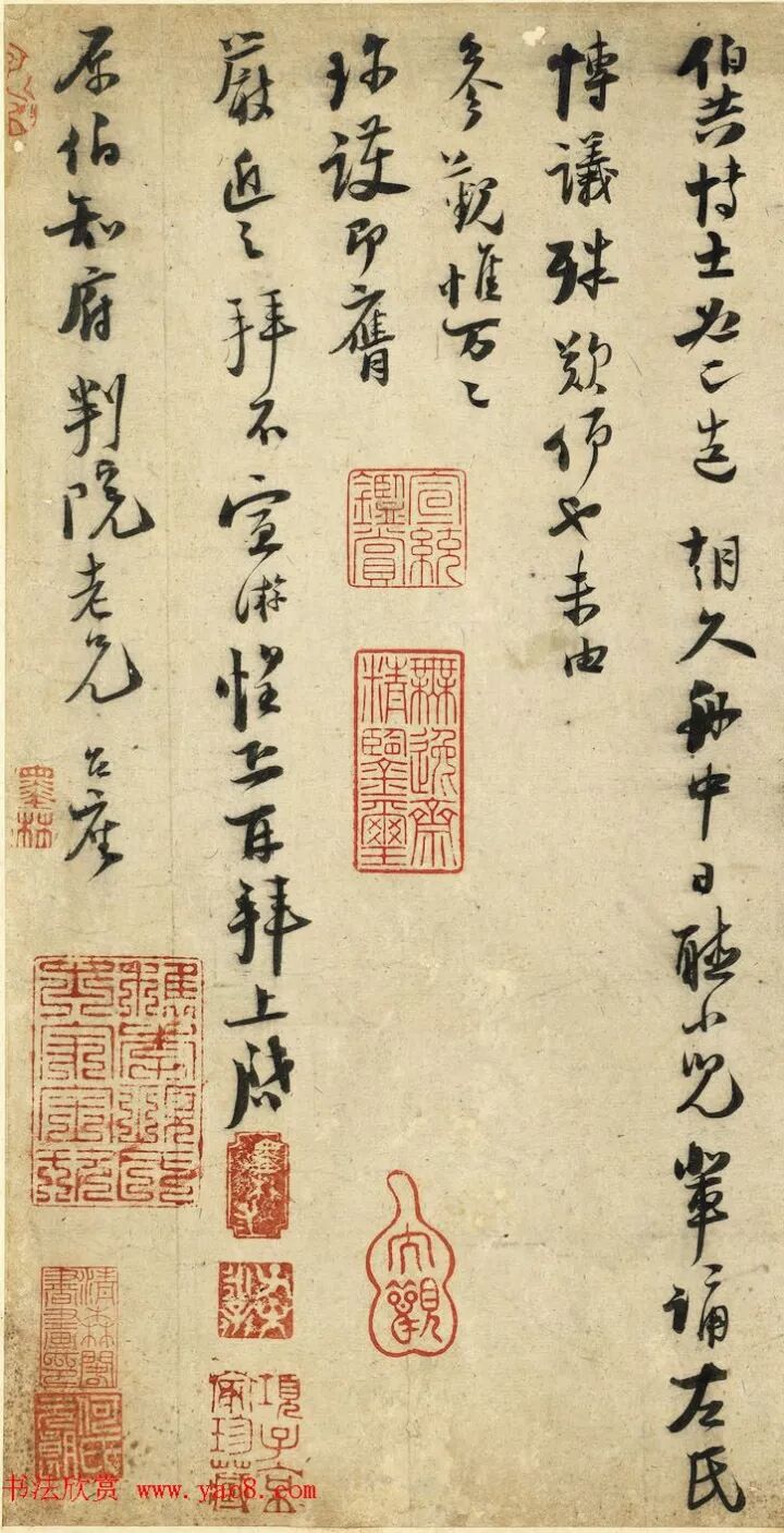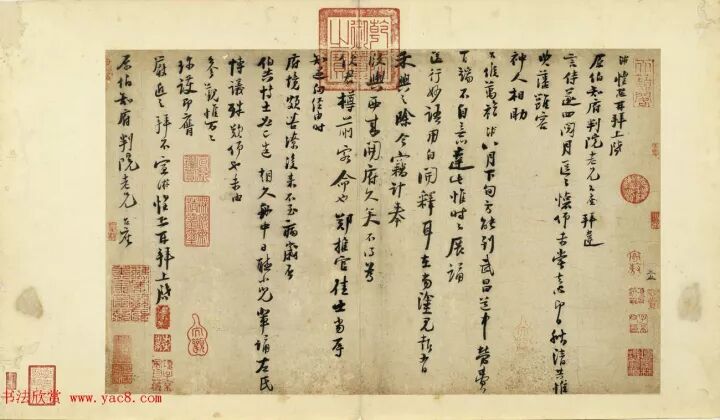 宋諸名家墨寶冊--宋陸游書尺牘,尺寸:40.5x70.7厘米,台北故宫博物院藏。